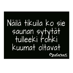 Näilä tikuila ko sie saunan sytytät tullee rohki kuumat oltavat