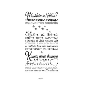 AinutlaatuinenJulisteen koko 30x40 cm. Mustavalkoinen. Paperi vahva 160g. Koko 21x30 hinta 5€...