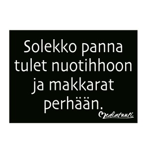 Sole ko panna tulet nuotihhoon ja makkarat perhään.